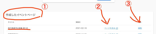 ① 作成したページが全て見られます